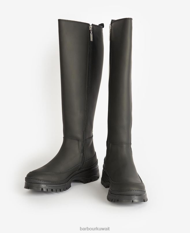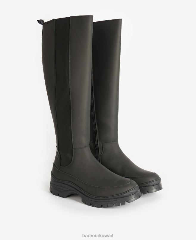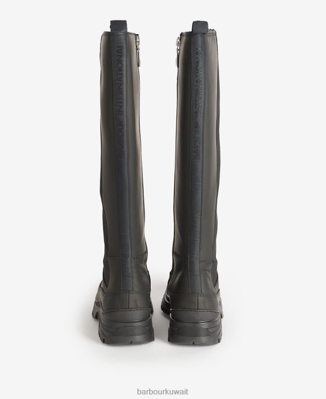 حذاء بوت تشيلسي يصل إلى الركبة على نعل مطاطي ، صُنع حذاء باربور إنترناشونال بوديوم من جلد أنيق مغطى بالمطاط.