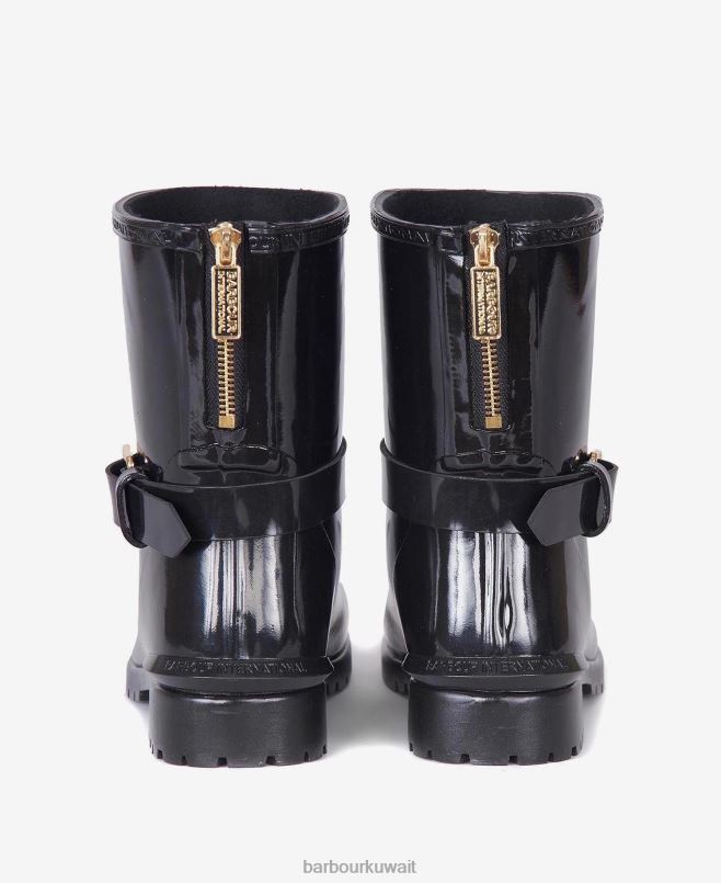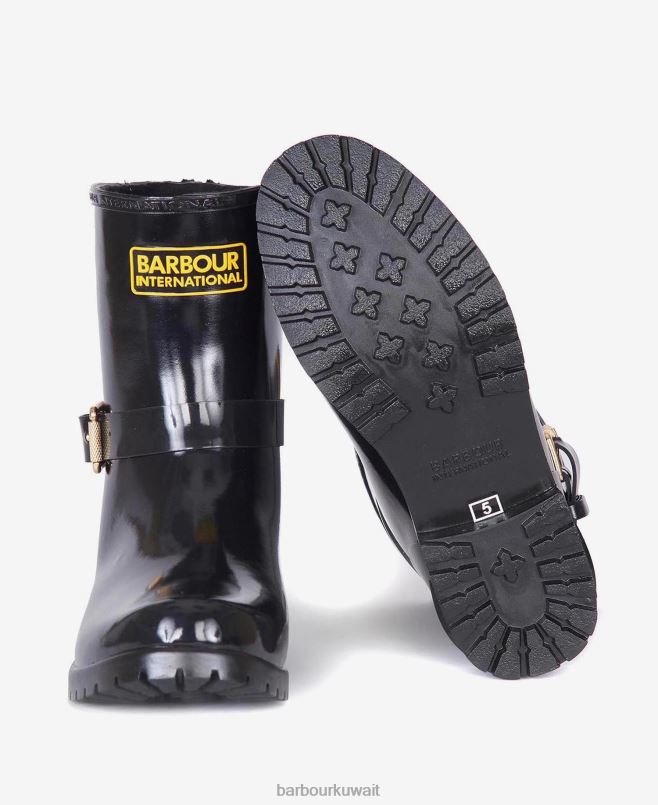 حذاء ويلنجتون المستوحى من راكبي الدراجات النارية ، مقطوع بمظهر منخفض ويتميز بسحاب في الخلف لسهولة التشغيل / الإيقاف. توفر البطانة المصنوعة من الصوف الدفء الفائق ، بينما يُضفي مشبك زخرفي وشارة الشعار المطاطية مظهر باربور الدولي الشهير.