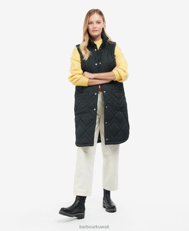 تصميم بطول أطول ، جيليه باربور ديو يتميز بتصميم مزدوج مبطن بالماس مع ياقة قمعية. مثالي للطبقات فوق الحياكة الأساسية ، يتميز هذا الثوب بإبزيم أمامي وجيوب كبيرة. مثالي للاقتران مع تي شيرت كلاسيكي أو محبوك ، هذا الثوب منتهي بتطريز باربور على الجيب الأيسر.