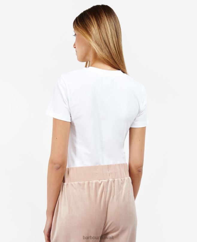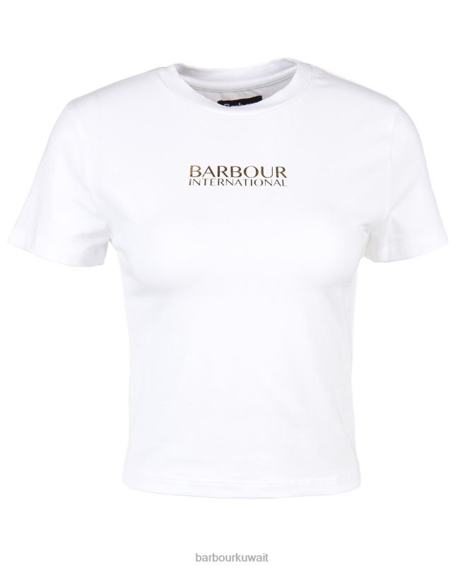 تم قطع تي شيرت كلارمونت من باربور انترناشيونال بتصميم قصير مع رسم مطبوع على مقدمة الصندوق.