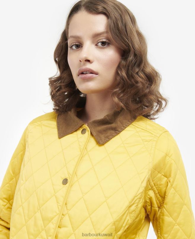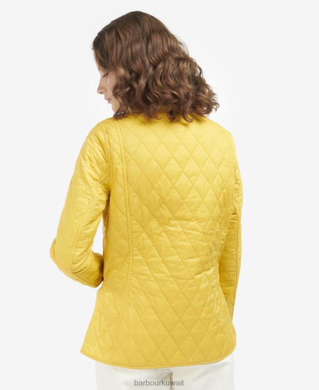 تم تصميم هذه السترة النسائية الأنيقة المبطن بدرزات الجسم ذات الشكل الجذاب للحصول على صورة ظلية أنثوية جميلة. طوق حبل الجلوس والجزء الخارجي المبطن بالماس يخلقان مظهر باربور المميز.