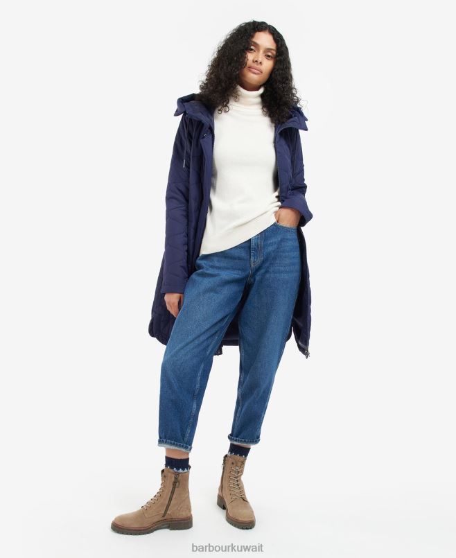 سترة مبطنة من باربور نحلة تتميز بتصميم مبطن جديد من البصل المهروس من خلال شكل متوسط الطول ، مع غطاء. إنه العنصر الأساسي المثالي للاحترار الذي يتم وضعه فوق مظهرك غير الرسمي في الطقس البارد.