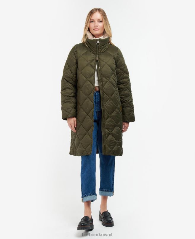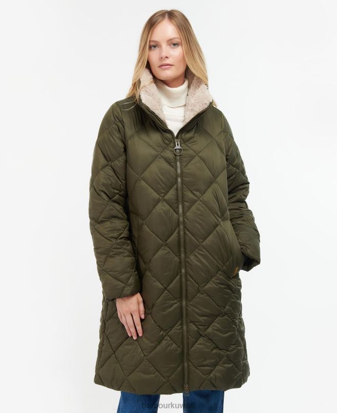 تتميز جاكيت باربور كيلموري المبطّن بتصميم طويل الطول بأسلوب مبطن بالكامل مع ياقة قمع مكتنزة مع دمية من الداخل. يتميز هذا الثوب بتفاصيل ضلع داخلي على الأساور ، ويتميز بلوحة خلفية مبطنة بالترتان. علامة باربور التجارية على الجيب الأيسر تنهي الملابس بسهولة.