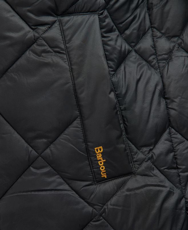 تتميز جاكيت باربور كيلموري المبطّن بتصميم طويل الطول بأسلوب مبطن بالكامل مع ياقة قمع مكتنزة مع دمية من الداخل. يتميز هذا الثوب بتفاصيل ضلع داخلي على الأساور ، ويتميز بلوحة خلفية مبطنة بالترتان. علامة باربور التجارية على الجيب الأيسر تنهي الملابس بسهولة.