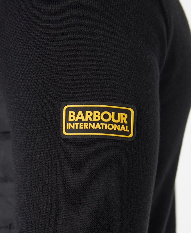 تُظهر حياكة b.intl legacy baffle zip من خلال عرض اللحف المربك على الجسم ، وتوفر قطعة طبقات أنيقة بدون مجهود تتميز بتفاصيل ضلع على الياقة والأساور والحاشية مع علامة تجارية متباينة على الأكمام.