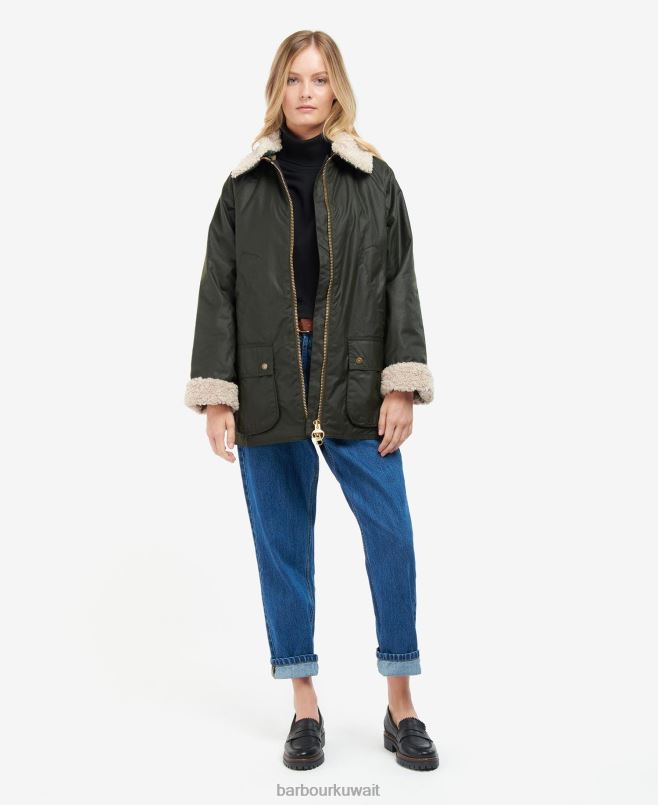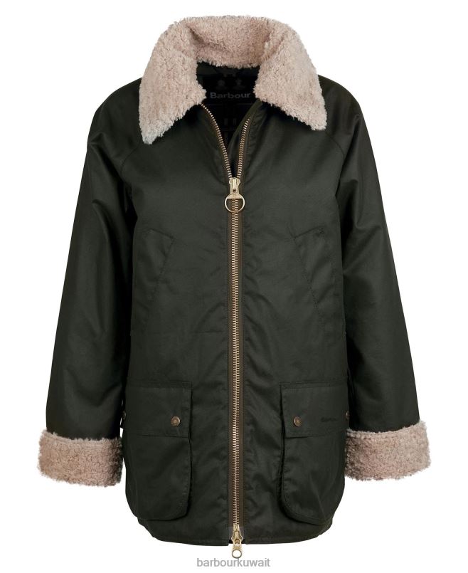 جاكيت باربور كارلوواي الشمعي يتميز بتصميم أقصر طولاً مع ياقة تيدي قابلة للفصل وياقة من الحبل أسفلها. عرض واجهات الكفة التي يمكن ارتداؤها وإعادتها إلى الوراء لارتداء متعدد الاستخدامات. تم الانتهاء من الجيوب التقليدية والمبطنة بطبقة من الترتان ، وتتميز هذه السترة بشعار الماركة على الجيب الأيسر.