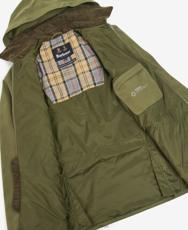تتميز سترة Ashby المقاومة للماء بغطاء قابل للفك لتعدد الاستخدامات الذي لا هوادة فيه. يتميز هذا النمط بجيوب دافئة يدويًا وجيوب رقعة سفلية لتوفير مساحة تخزين مفيدة بينما توفر فتحات التثبيت المثبتة في الجزء الخلفي من الغلاف اهتمامًا ممتازًا بالتفاصيل. تطريز باربور متباين على رفرف الجيب الأيسر يكمل الثوب.