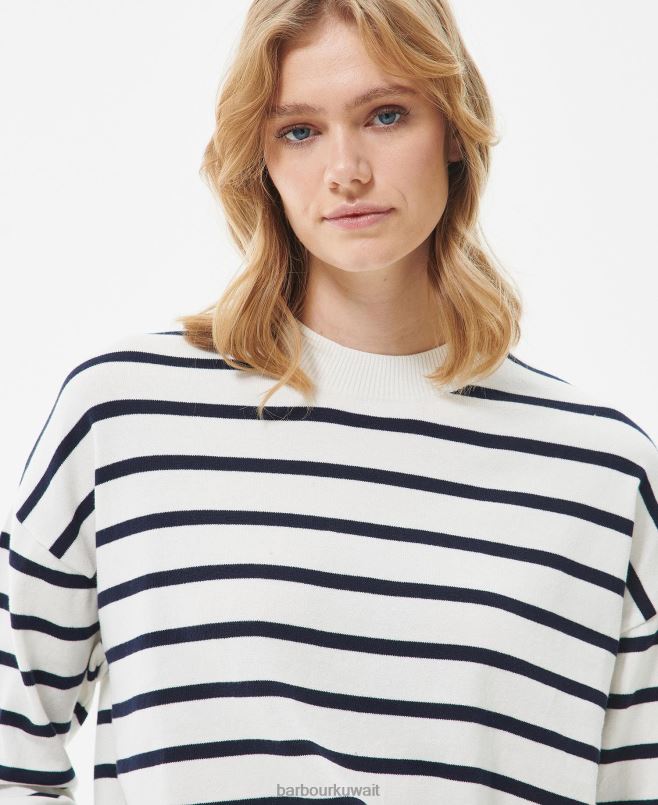 يأتي كنزة باربور برادلي بقصة مريحة مع أكتاف متدلية لإطلالة مريحة لعطلة نهاية الأسبوع. مصنوع من القطن بنسبة 100٪ ، ويتميز هذا الثوب المحبوك بخطوط عريضة بألوان متعددة وحواف مضلعة وشريط يحمل علامة تجارية على الرقبة الخلفية.