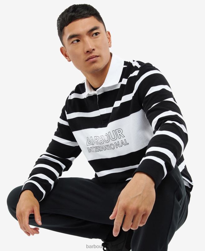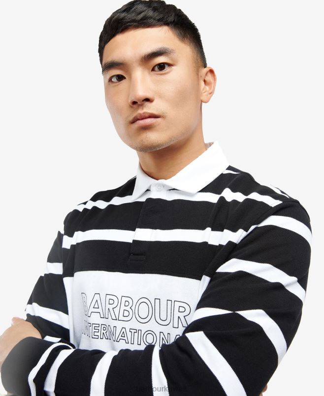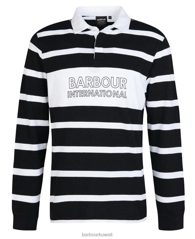 Barbour رجال قميص بولو مخطط طويل الأكمام الشمسية H2VVL739 ملابس أسود