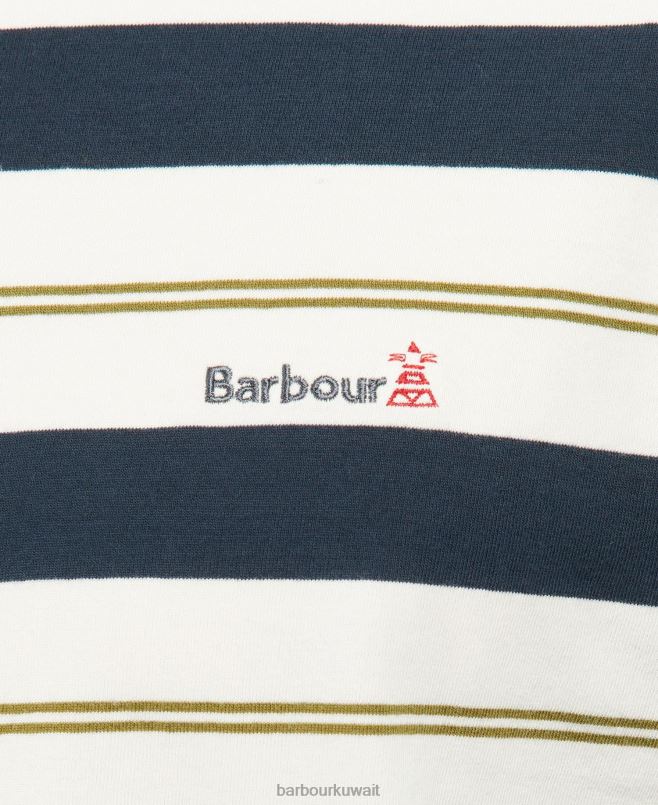 Barbour رجال تي شيرت مخطط كندراي H2VVL860 ملابس همسة بيضاء
