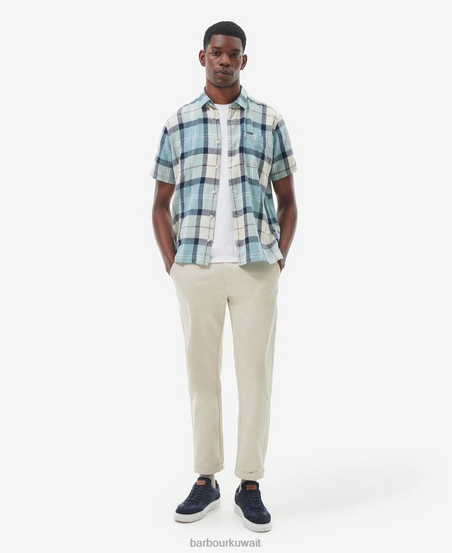 Barbour رجال كروفت قميص صيفي بأكمام قصيرة H2VVL289 ملابس الترتان الأزرق الطباشير