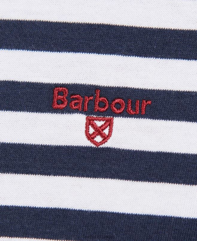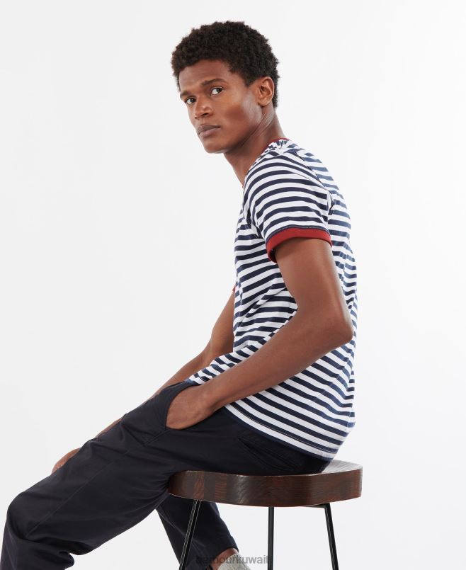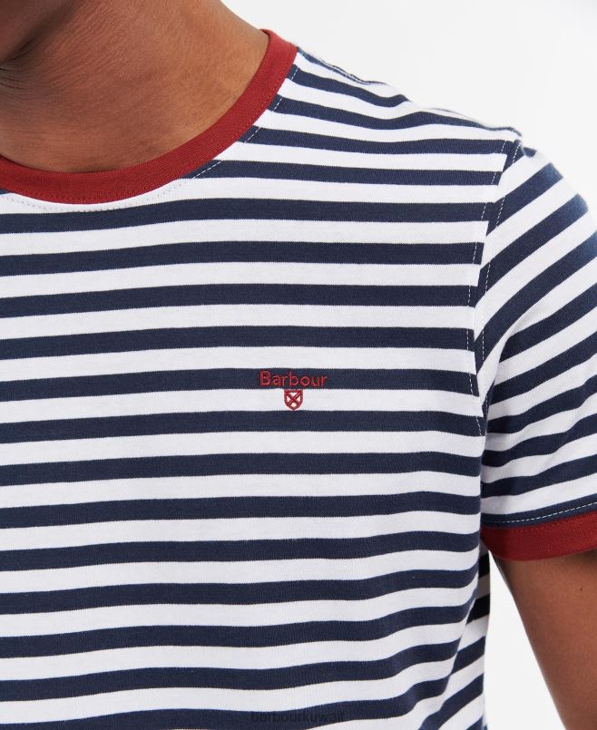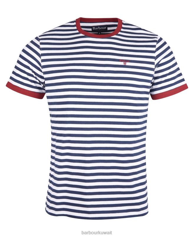 Barbour رجال تي شيرت مخطط كواي H2VVL785 ملابس القوات البحرية