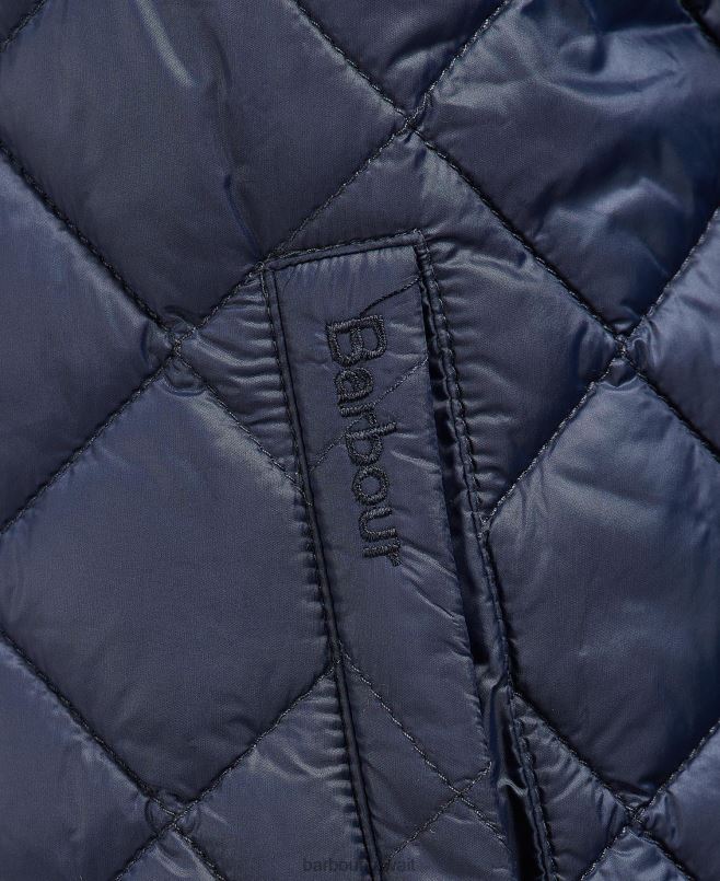 سترة مبطنة من باربور جالينتو تتميز بتفاصيل مضلعة على الياقة وإغلاق أمامي بسحّاب مع جيبين سفليين لتوفير مساحة تخزين عملية. يتميز هذا الجاكيت بتفاصيل ضلوع على الأساور والحاشية ، بلمسات نهائية من بطانة الترتان للحصول على أناقة فاخرة.