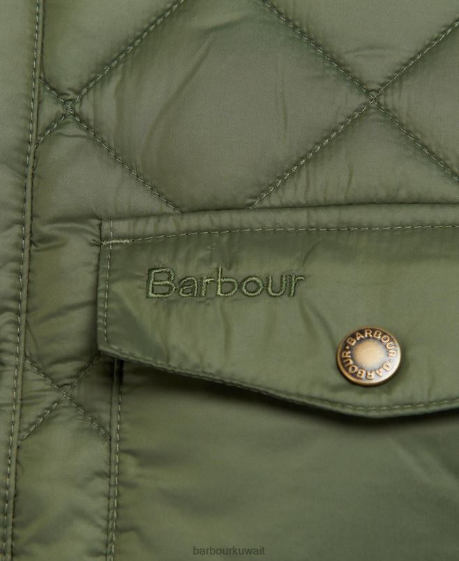 جاكيت مبطن من باربور للمبتدئين يتميز بتصميم لحاف كامل الصندوق مع أربطة أمامية. تقليدية وكلاسيكية في كل شيء ، الثوب الأنيق مزين ببساطة بجيب رقعة متباين على الصدر.