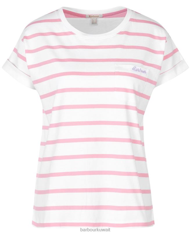 Barbour نحيف تي شيرت مخطط Otterburn H2VVL1649 ملابس أبيض / كركديه