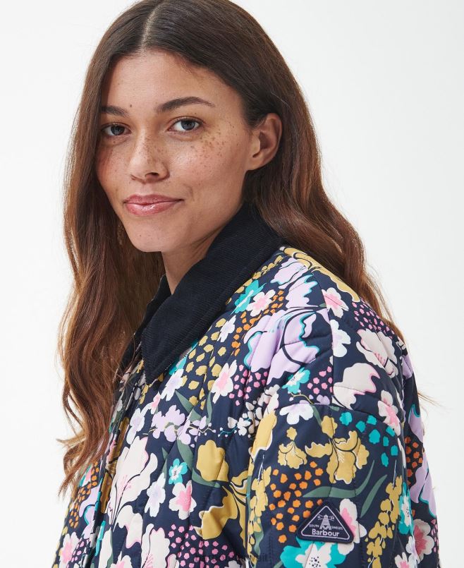 Barbour نحيف جاكيت مبطن دلفينيوم مطبوع H2VVL1438 ملابس عجائب نباتية مطبوعة / كحلي غامق