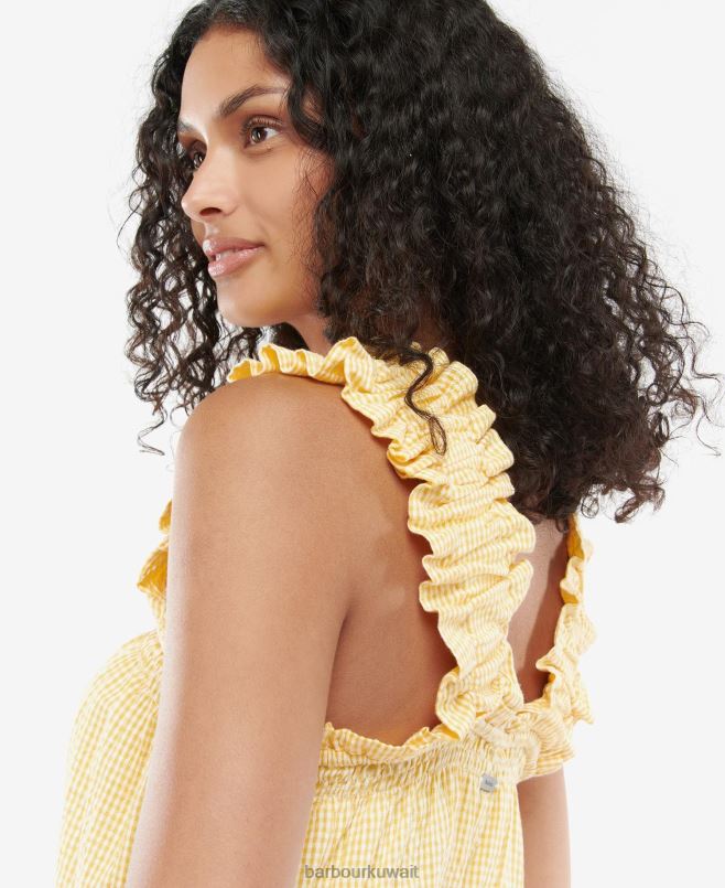 Barbour نحيف فستان الدير H2VVL1869 ملابس تحقق الشروق الأصفر