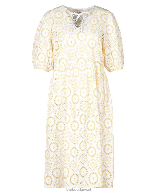 Barbour نحيف فستان ايديس H2VVL1823 ملابس أبيض / شروق الشمس أصفر