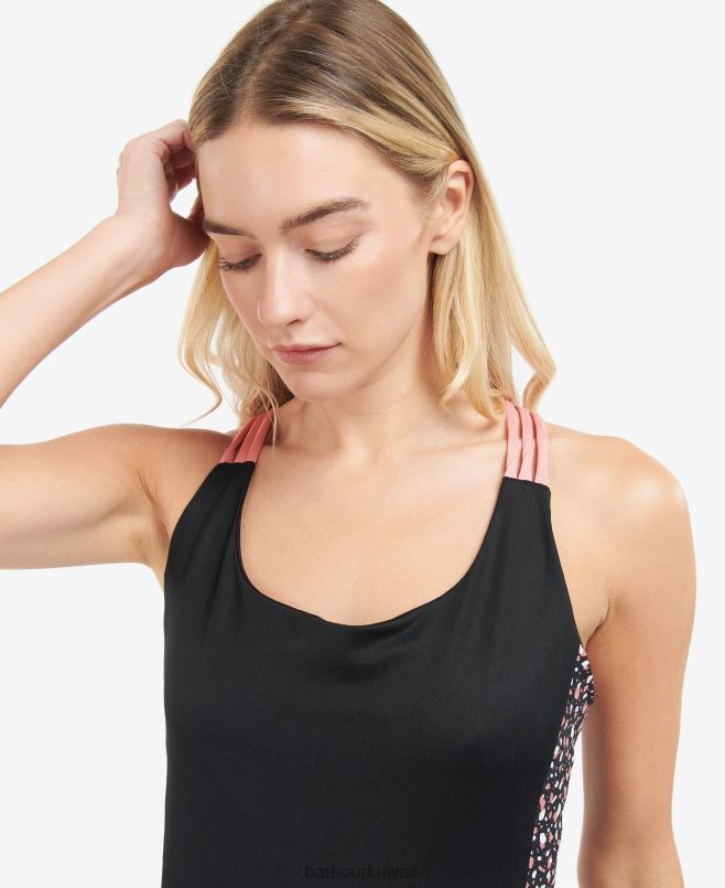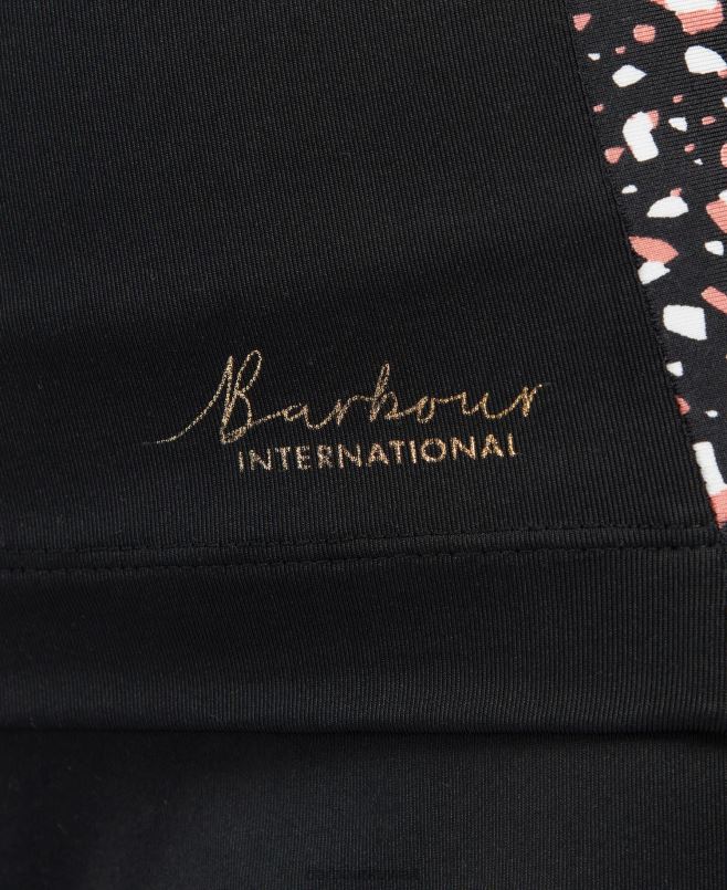 سترة رياضية للسيدات ، تتميز مضمار السباق بأشرطة ملونة وطبعة تيرازو على الألواح الجانبية. تم تصميم الثوب للتمدد والتحرك معك ، في حين أن تطريز النص الدولي باربور يبرز الأسلوب بجاذبية توقيع.