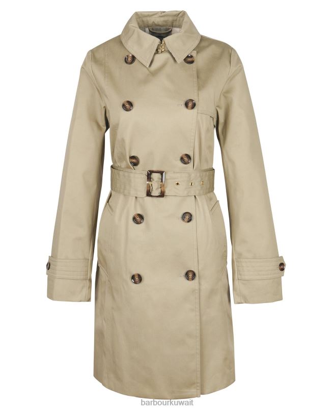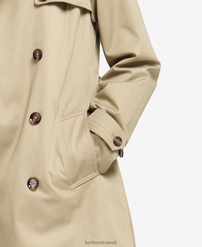يتميز معطف الترنش القصير المقاوم للدش من باربور بتصميم خندق كلاسيكي في تصميم أقصر طولًا مع زخارف قرن الوهمية ومبطن بترتان من خشب الورد. يتميز بعلامة تجارية على الجيب الأيسر ، هذا المعطف ينضح بالأناقة الخالدة.